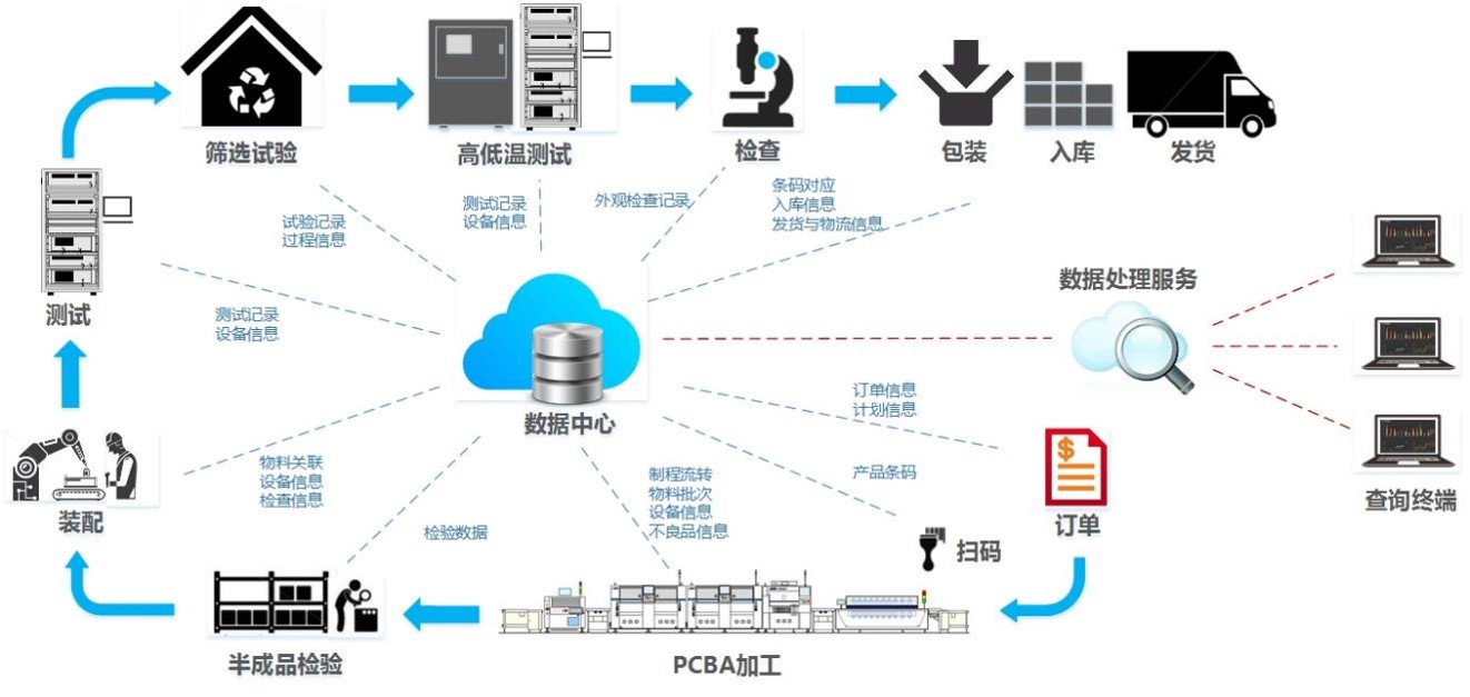 MES system is mainly aimed at the production test and control of TR components. It adopts distributed structure and integrates four functional modules: process control, use case test, data report, traceability and anti traceability. It ensures the smooth production test of TR components from laser coding to warehousing, and realizes the full coverage of functional test, and the full record of process and data.